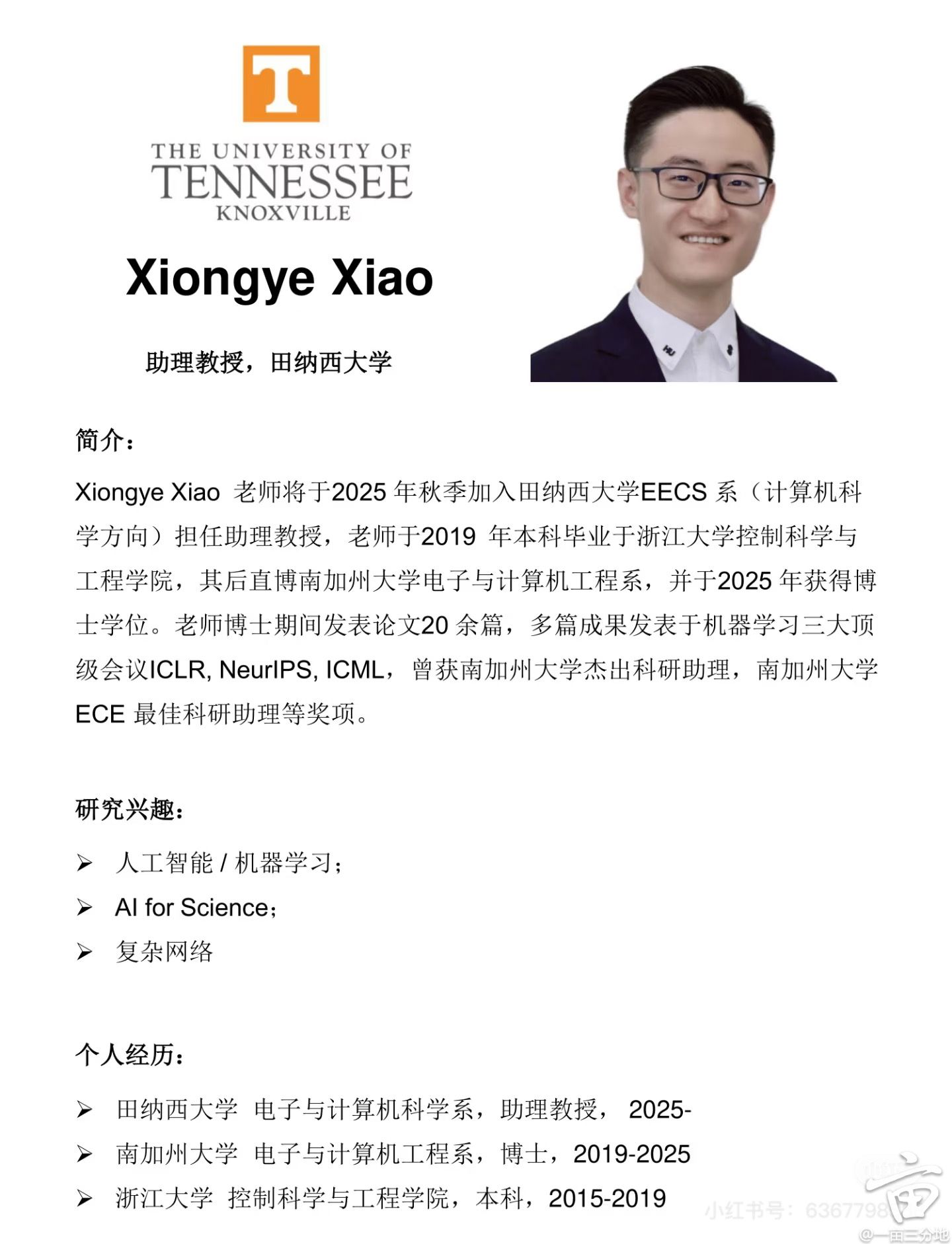 肖将在 2025 年秋季加入田纳西大学(University of Tennessee, Knoxville)EECS 系,担任 tenure-track 助理教授(CS方向)。现长期招收: