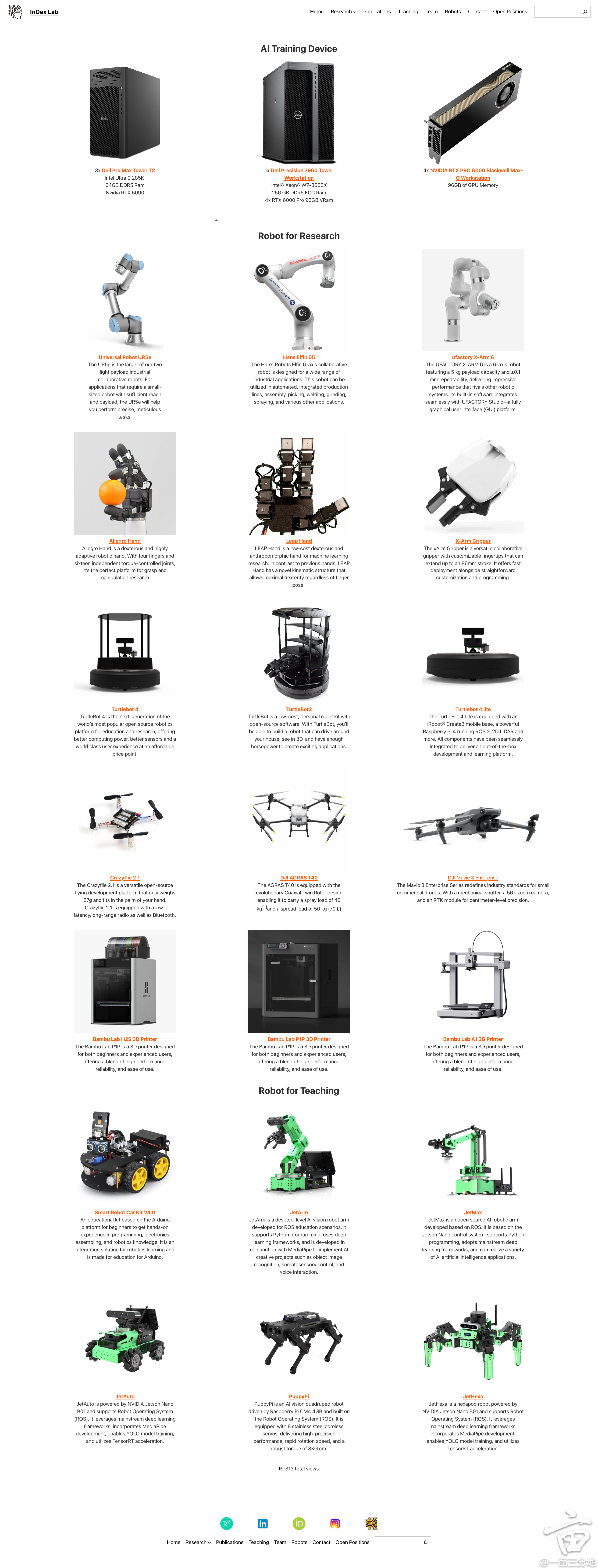 - 机器人平台:机械臂、灵巧手、机器狗、无人机、轮式机器人