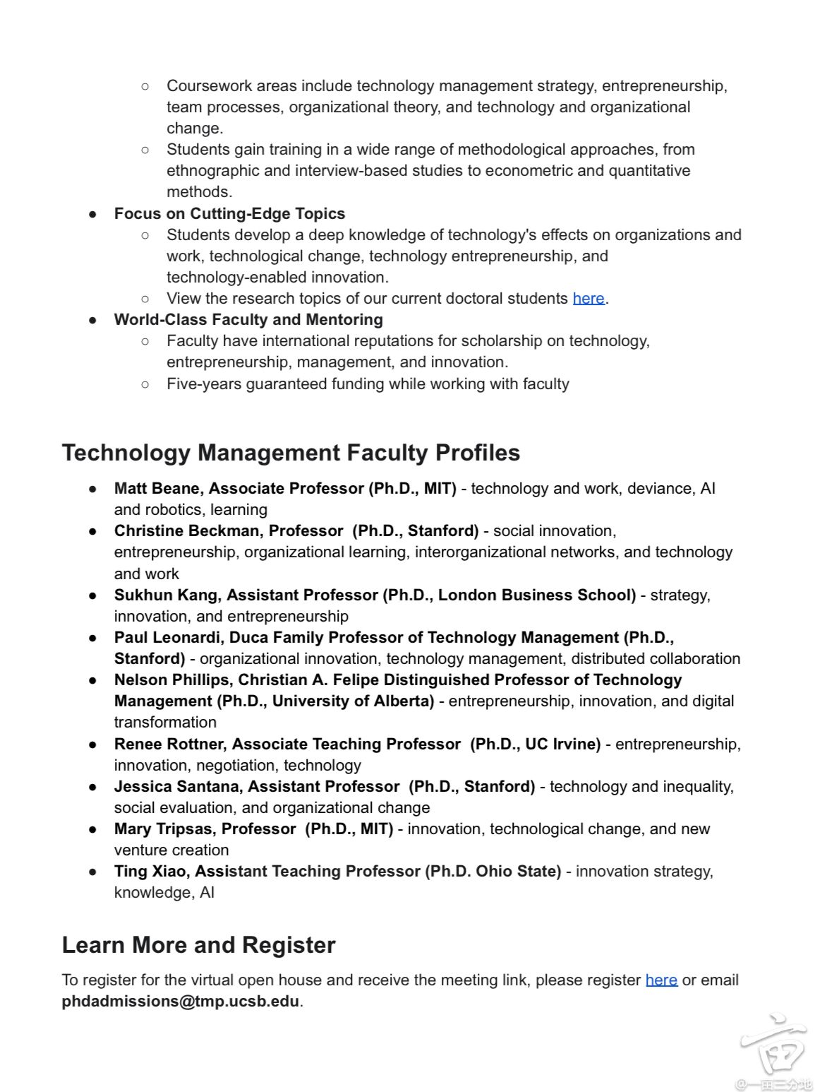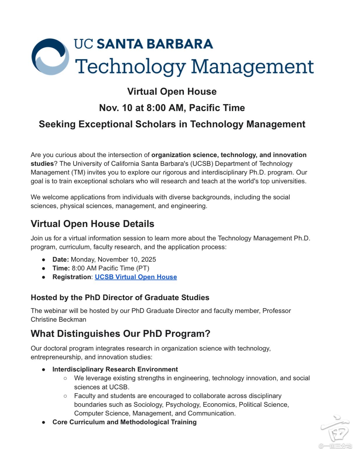 26Fall 🔥 UCSB Technology Management PhD宣讲会(11.11)