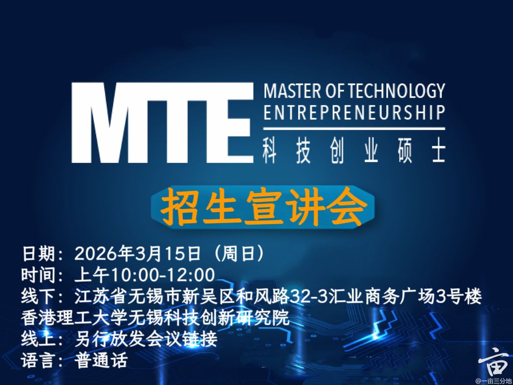 想全面了解MTE课程设置,清晰把握MTRI平台资源等核心优势吗?欢迎大家报名参加MTE课程线上线下宣讲会。 有专属MTRI实地参观环节,带您直观感受技术转化与产业落地的真实场景。此外,现场设有1对1咨询通道,您可随时咨询申请细节、学习规划等问题。
