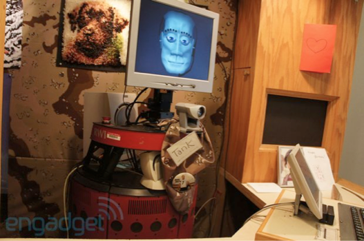盗图一张,NSH三楼名叫Tank的小机器人,十几年兢兢业业的作为RI的前台,负责接待外宾和回答有关RI的所有问题,如今都已经成为RI的在职人员,,看这个:Roboceptionist: ri.cmu.edu[/align][align="left"]