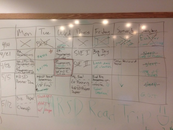 下面介绍一下自己当初所在的项目:MRSD,在RI官网项目介绍时已经标注了它是一个非常独特的项目: 如果你看师资组成,它是由一半机器人学院的教授和一半商学院(Tepper Business School)的教授组成。MRSD是一个商业导向的项目,目的就是为了“培养未来优秀的企业家和让每个人都能做机器人领域的创业公司”。项目的出发点源自于导师ri.cmu.edu 自己独特的背景经历,放着自己四五家企业不管, 跑回RI天天待在教室陪我们上课。有一天和他聊天也问过他为什么想做这个项目,他说:“我就不想看到你们整天在CMU一副nerdy样”...开玩笑的,正经的说因为他觉得工程师的未来也在管理岗位,他希望能够培养未来不仅懂技术也知道如何把技术做成公司运营的创业家。基于这个理念,MRSD的课程配置也是文武结合,注重实践。两学期的技术和商业课程学习外加六个月的实习项目(去年开始改成三学期了)。同时从第一学期开始,学生们需要四到五人组队去做一个为期一年的机器人项目(可以自己选题或者跟进教授的项目),每周都会有进度展示,每月也有项目评估。组员需要从技术和商业前景来展示自己项目的完成度和不断修正的商业模型,商学院和RI的导师会根据展示评分然后从商业和技术的角度给出反馈。每一个项目在学期末的完成度都很高,大家也会在自己的网站上放出ppt和视频让大众追踪。项目完成的时候RI也有和Alpha Lab Gear(CMU的硬件风投)合作,来对有想法和项目不错的同学进行天使轮评估和投资。关于MRSD的很多细节可以说很多,这里就先介绍到这,也欢迎大家去官网进一步查阅。