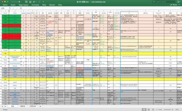 我的选校表格[align="left"]4.1 第一轮粗选看量[/align][align="left"]利用能找到的一切渠道如各大留学论坛、知乎、豆瓣、Quora 等尽可能多地收集美国开设与 HCI 相关的专业,并按照不同 HCI 项目的偏好与培养方向分成「设计」、「商科」、「计算机」、「数媒」、「其他」五个大类,目的是不要错过任何一个也许适合你的项目,最小化因信息不对称而错失优质项目的可能性,第一轮结束共列出 90 个左右的相关项目。然后挨家查阅每个项目的官方网站并在选校表内添加学校、学院、项目、排名、是否 STEM、时长、地理位置、申请截止日期、申请费、学费、奖学金、GPA 要求、托福、GRE、送分代码、第三方成绩认证、PS、额外 Essay、简历、推荐信、作品集、面试、本科背景、工作经验、课程大纲等具体信息和申请要求的数据。掌握基本情况后,我按照「我没资格去的项目」(要求有设计或编程背景的)和「我不想去的项目」(排名太末的、方向不感兴趣的、学费太贵的)两项条件筛除第一轮院校和项目。[/align][align="left"]4.2 第二轮精选看质[/align][align="left"]第二轮精选的前提是对自己的兴趣方向有大概的了解,HCI 是个学习方向包罗万象的交叉学科,毕业后职业路线也五花八门,无论兴趣有多广或多窄,无论是创业还是就业,最关键的核心都是让自己的技能点和想实现的目标匹配。如果你对自己的发展方向或者兴趣所好还没有明确清晰的了解,可以参考我的好朋友 zhihu.com 在这篇文章里的方法摸索自己的定位。[/align]zhuanlan.zhihu.com[align="left"]如果你像我一样对什么都有兴趣什么都不想放弃,可以参考 GitHub 的高级产品设计师 Joel Califa 在母校 Parsons 的演讲视频,如何在众多兴趣中理出优先级和重点。[/align]link.zhihu.comyoutube.com