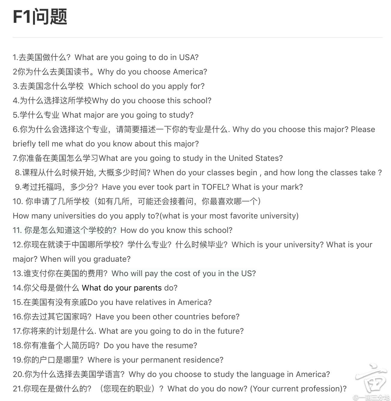 据我目前所知道的情况来看,一般F1面签的套路是:「你去什么学校,去学什么专业,为什么选这个学校,你的学习计划是什么,你的导师是谁…」