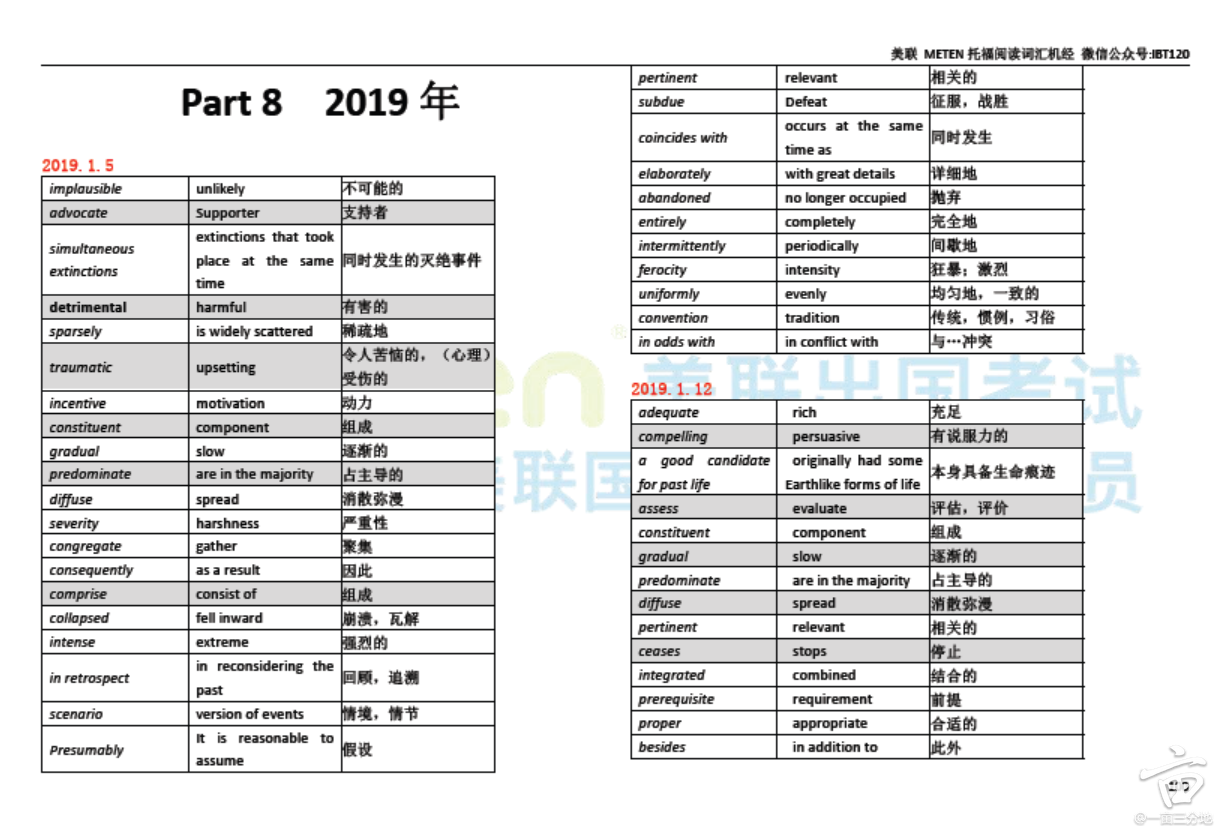 词汇题我主要背的是往年机经词,我之前大概看了一下,主要把前一年的机经词背好基本上就可以覆盖大部分的词汇题。如果不放心并且有时间的话,可以也过一下前年的机经词。这里我要安利一下美联的机经词汇资料(不是广告,真的好用,我一直白嫖…),免费并且不需要转发就可以领取,而且基本上每个月都有更新当月考试的词汇,有不带中文释义和带中文释义两个版本,我只有更新到去年10月份的机经词汇资料,放到了下面的链接里,如果想要最新的版本,可以关注一下资料里面的公众号,加小助手领取最新的(他们家的小助手不会天天发广告或者不买课就不断打扰,所以我用了很多他们家的资料)。我基本上是考试前一周过一到两遍前一年和当年考过的机经词汇。放一张资料的截图。