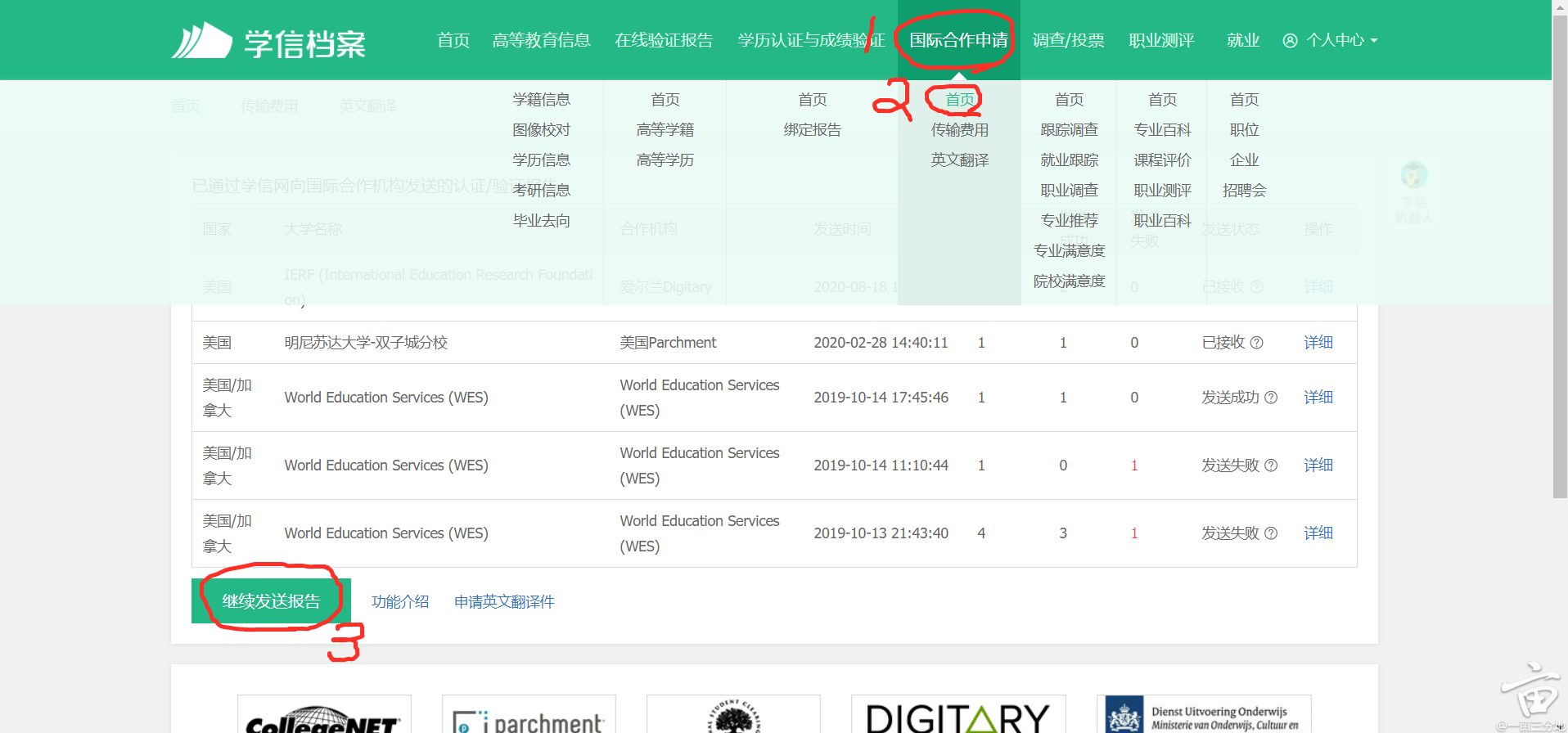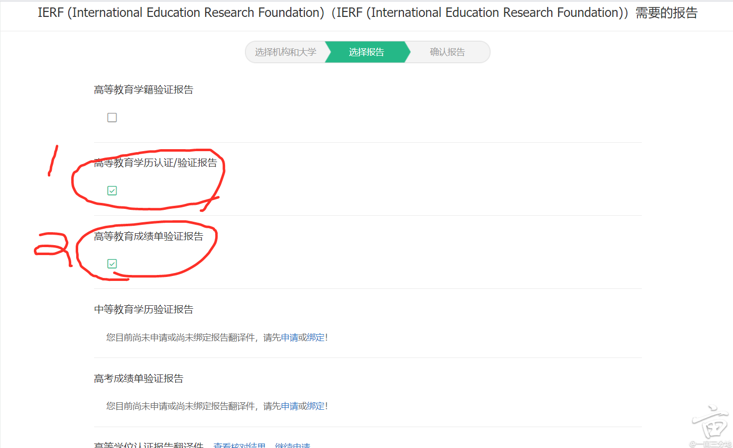 在正式进入IERF认证之前,假设你的中英文版本①毕业证,②成绩单,已在学信网(my.chsi.com.cn)认证通过,且中英文版本的③学位证,已在中国学位与教育文凭认证(chinadegrees.cn)认证通过。由于网上认证攻略很多这里就不具体说明了。这里记得学信网如果很久都没有结果,一定要点一下催促/加急(一个按钮,具体叫什么我忘了Orz)。如果没点很有可能会认证几个月。。点了第二天就出结果了。PS:如果你是中外合作的学校,材料本身就是英文的,就不用翻译了。