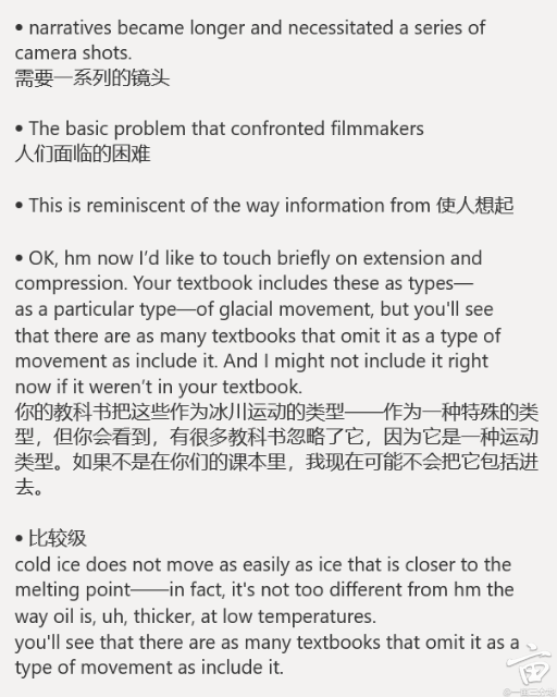 精听完后,还需要整体不停顿地听一两遍,一是回顾自己精听之后是否都理解了,二是把握文章整体的结构更方便后面答题。对于比较复杂的听力文章隔段时间也需要回来再听。在日常练习听力的时候可以加快速度到1.2-1.5倍。另外很多人会遇到记笔记的一些问题,我个人的经验来看,初练听力时光顾着记笔记,有时候完全不理解文章在讲什么,听到的内容也只是自己能够理解的词语,记着记着还错过一些内容,于是中期我在午休时就纯听听力,不动笔,我发现这样下来我听到的内容更多,而且大部分文章有逻辑衔接,内容基本都能记住,于是后来我的听力都是以听为主,以记为辅。