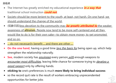 又例如在写分论点的时候应该用怎样的句子去表达,而不是像中文一样直接翻译。