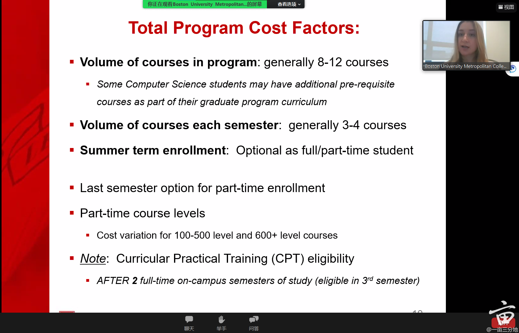 - Full-time: 该学期需修 3-4 门课(多了应该是不行,少了也不行),学费三万刀。