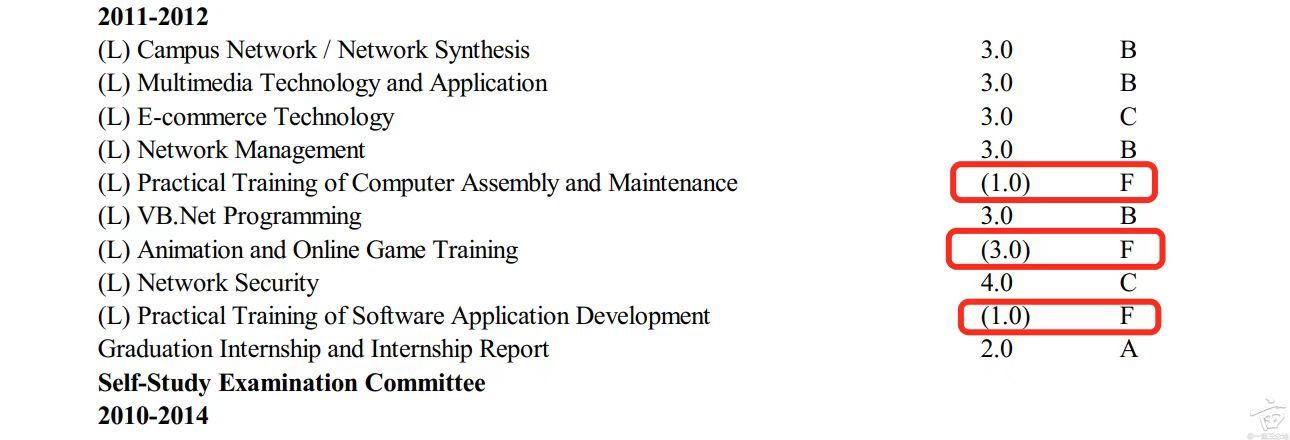 收到报告后,我发现 WES 把自考本科成绩单上没显示的学分全部添加上了,更致命的是,我的专科成绩单上居然有三门不及格成绩。我可没挂科过啊,后来仔细阅读才发现是学校开具的成绩单原件有误,当年没选择的选修课不仅显示为必修还因为我没选所以是零分。这我可不能忍,必须改了。