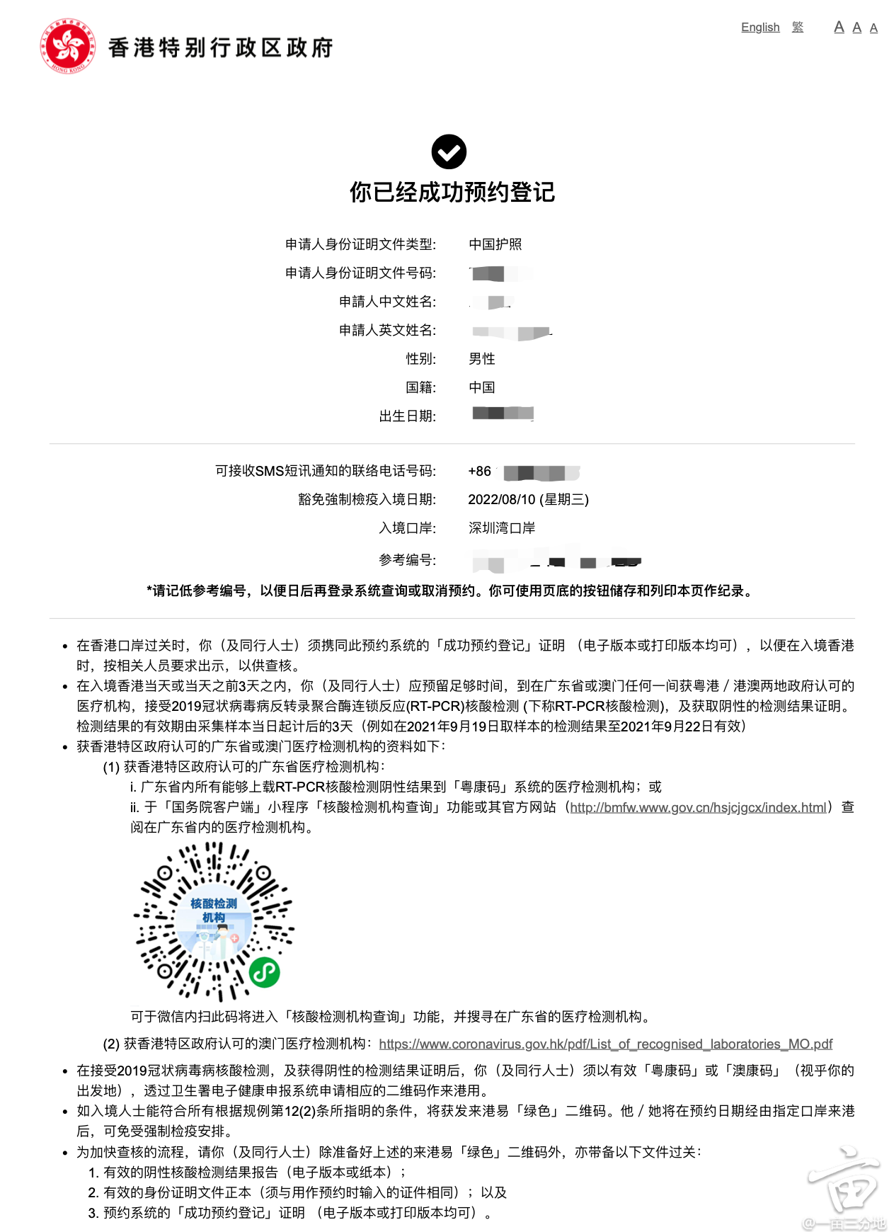 出行前24小时,记得上传核酸检测结果至香港卫生署,拿到来港易绿码,至此,入境前的准备就搞定了🥳