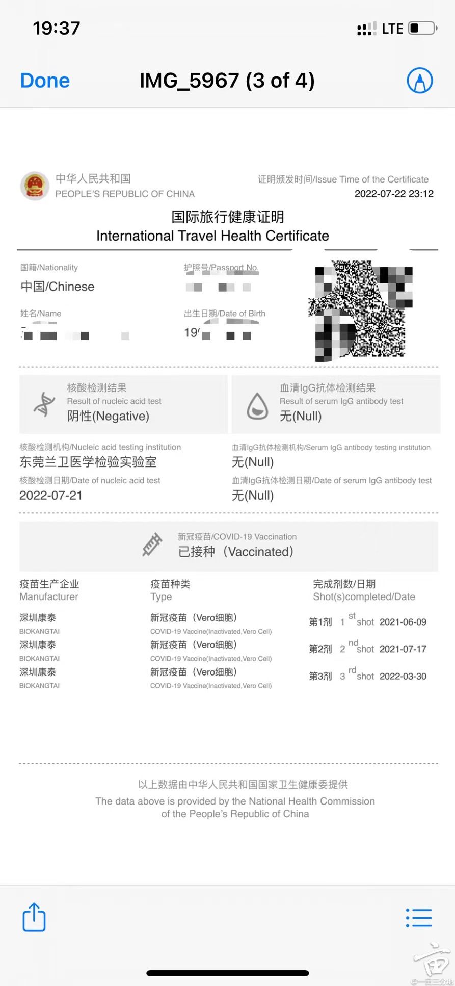 ✅ 新冠疫苗接种证明(”防疫健康码国际版“小程序可导出)