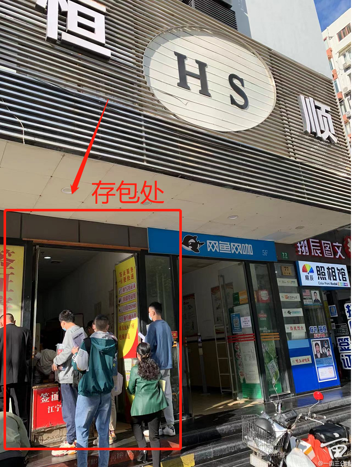 3) 去路对面(见下图)存包,单独存手机是10元,存背包是20元,存完包阿姨会给一个皮筋手牌(可以直接带进使馆的那种);