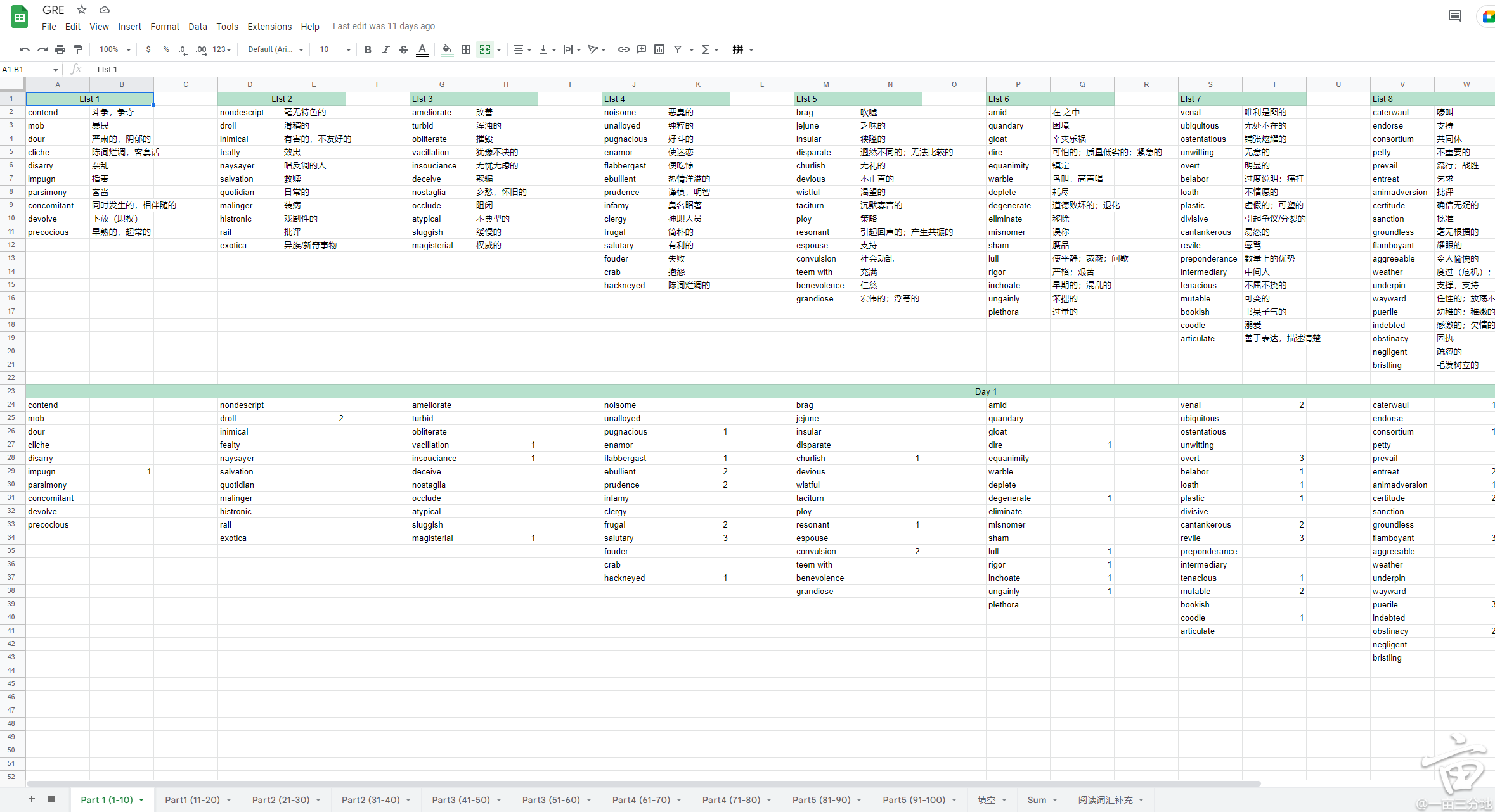 基本都是镇考词里的,能很好地巩固镇考词。我是圈划不熟悉的单词和觉得这也能能等价的单词。然后每天复习三个list