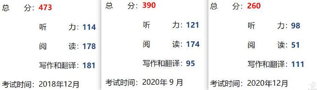 四六级考试成绩,第一个是四级认真考的,剩下两个是裸考的六级,六级最后一次听力阅读没认真考。