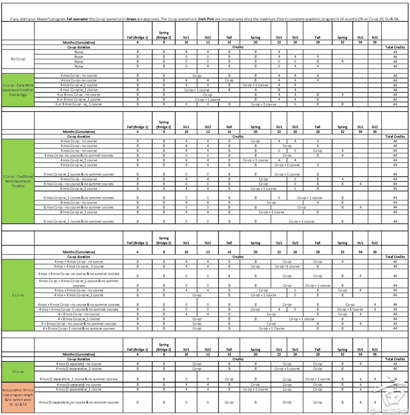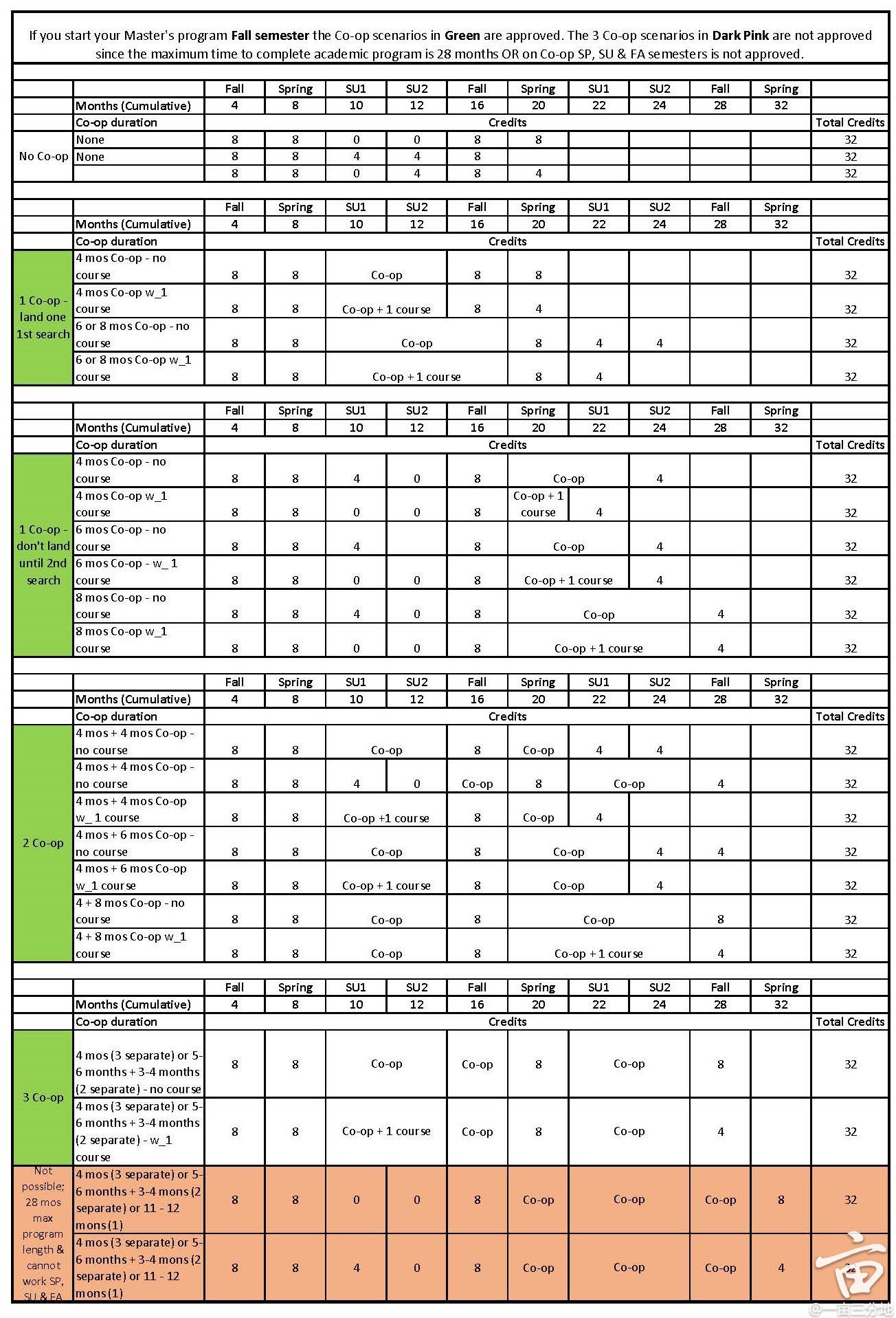 做2次COOP= 秋 + 春 + 暑COOP4个月+ 秋 + 春 &暑COOP8个月 + 秋(官方的案例中没有暑+秋连做8个月 + 次年暑COOP4个月的案例。但是根据官方延长COOP规定是允许延长暑假COOP到秋季的)
